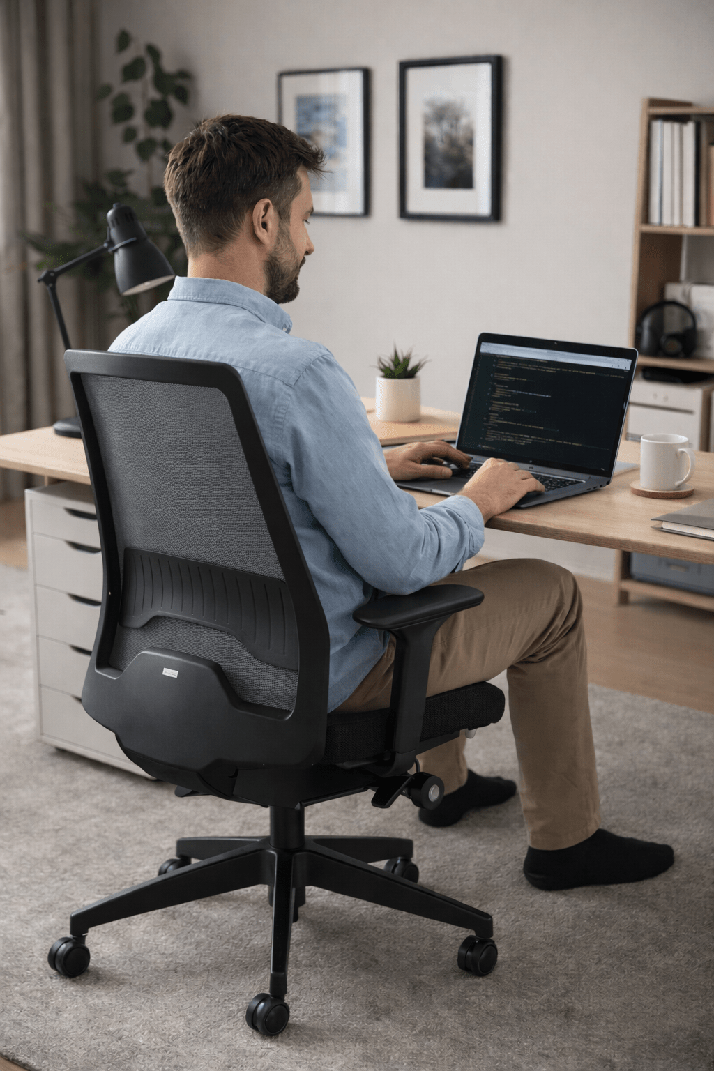 Das Ergebnis: ein moderner Bürostuhl, der sich perfekt in jede Arbeitsumgebung integriert.